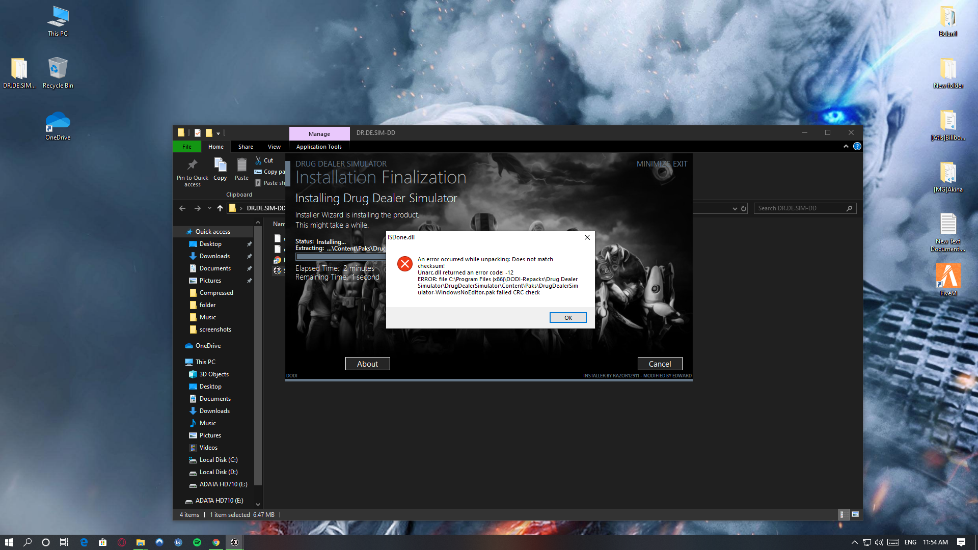 Unarce.dll returned an error code: 12-