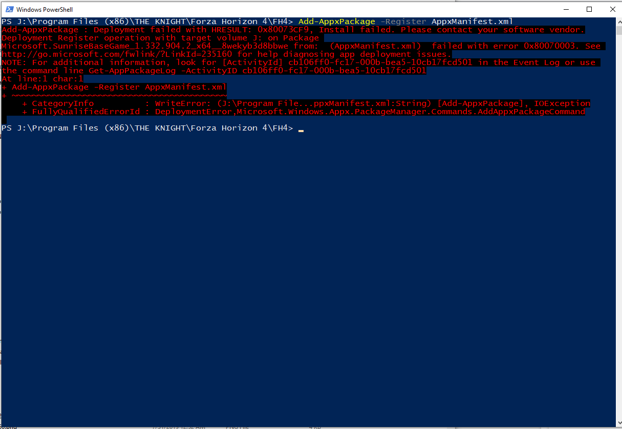 ADD-APPXPACKAGE -REGISTER APPXMANIFEST.XML