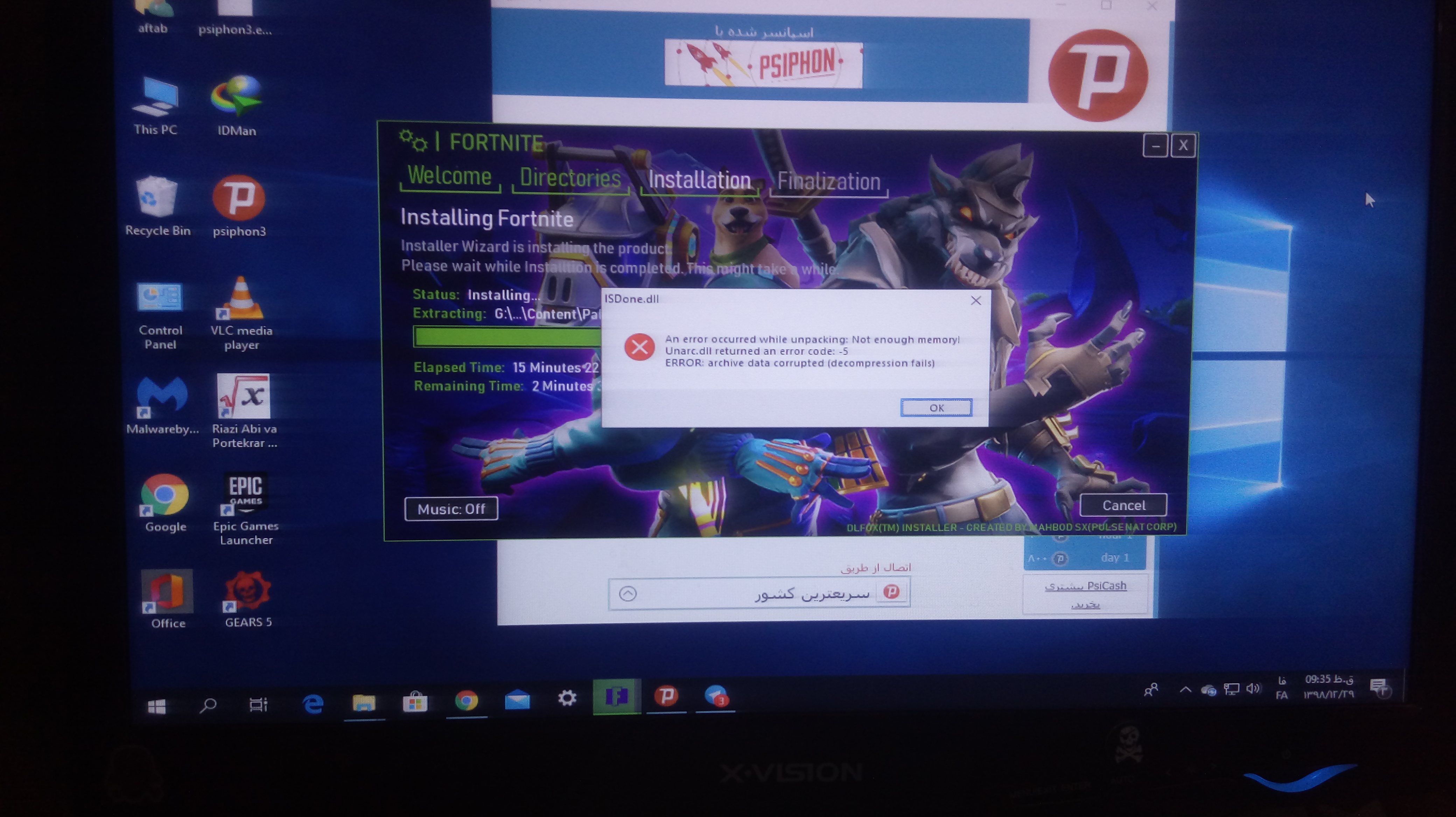 سلام مال من تو نصب فایل هایی که اکسترکت کردم ارور مموری میده