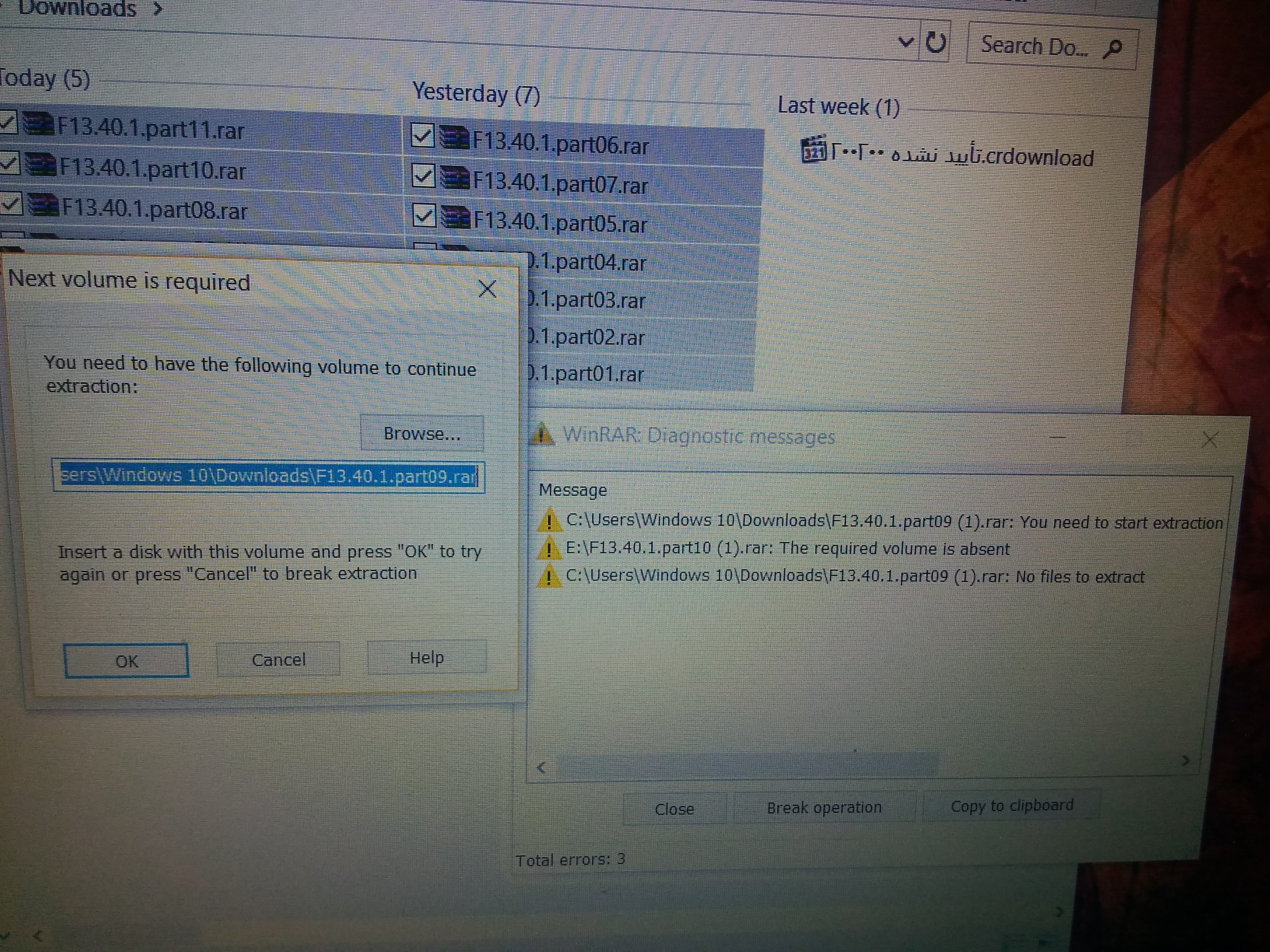 من وقتی دکمه اکسترکت رو میزنم این ارور میاد چیکار کنم؟