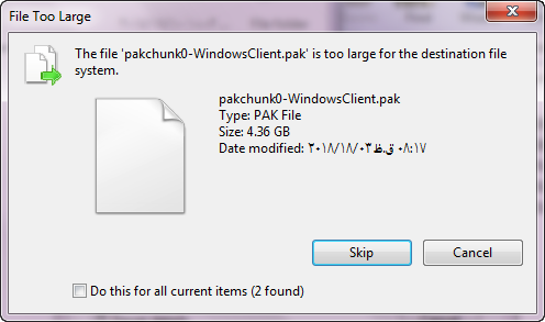 سلام با یک برنامه دیگه تست کن وقتی این مشکل دیده میشه که بخوای روی کارت حافظه جانبی که فایل بیشتر از ۴ گیگ رو نمیتونه داشته باشه اکسترکت کنید