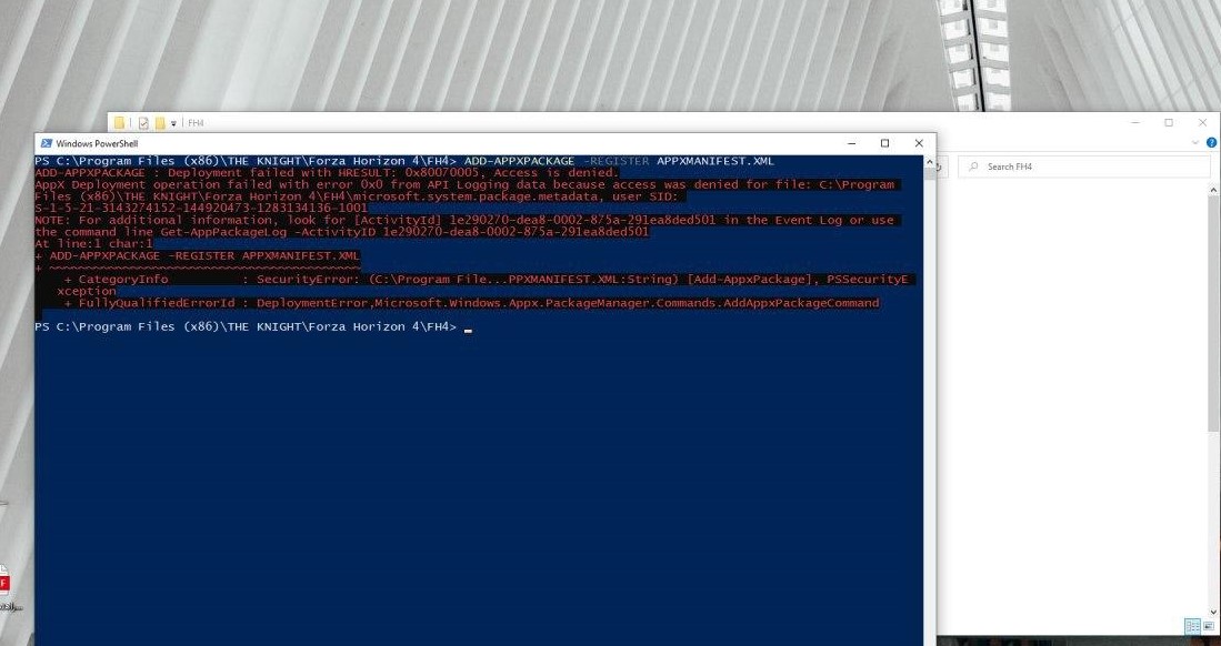 There’s a problem with Forza Horizon 4. Contact your system administrator about repairing or reinstalling it.