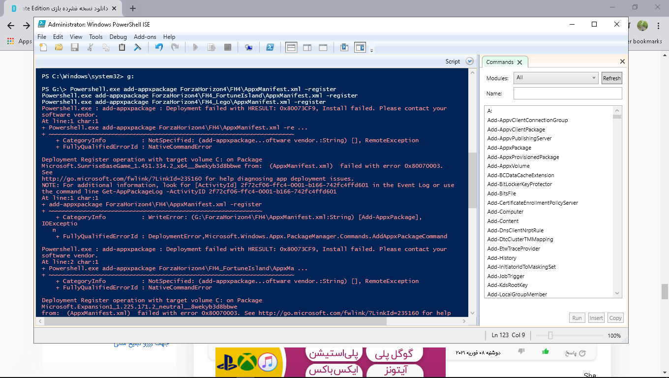 این اروری هست که میداد بعد من اومدم تو اون c /system32 / fh4