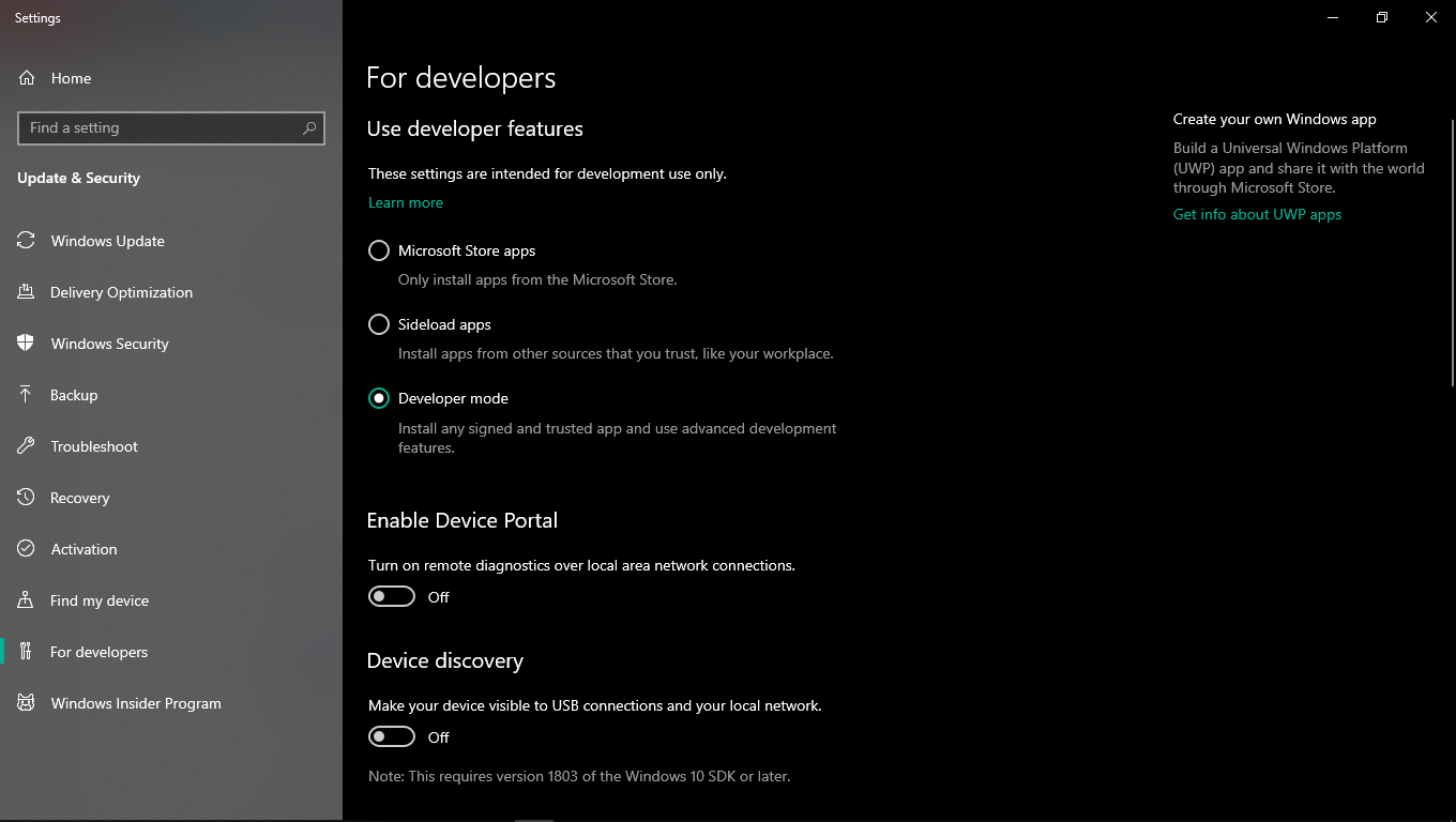 ✔ حالت Developer Mode را روشن نمایید(برای تنظیم به محل زیر بروید)
